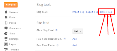 Now select Delete blog tab in right upper corner of the page as shown above.